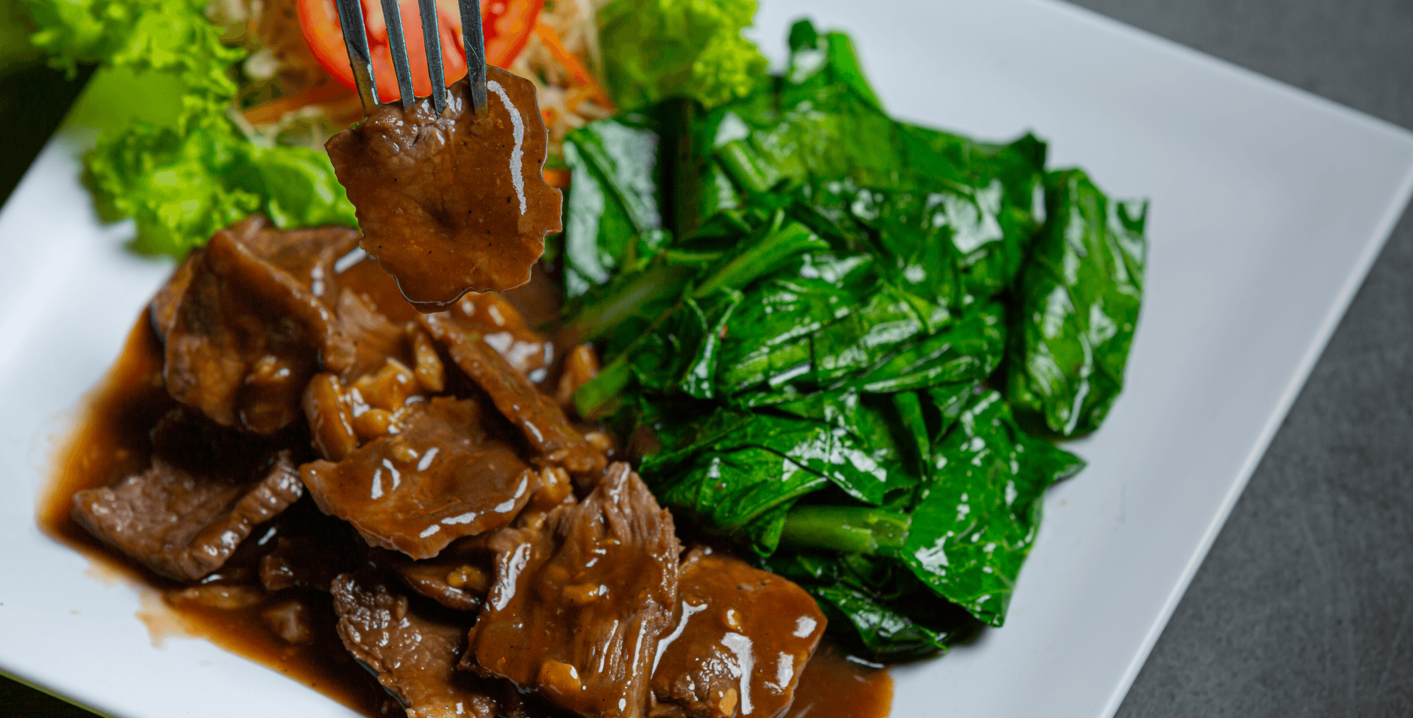 Stir-fried beef with broccoli in oyster sauce with fresh vegetable